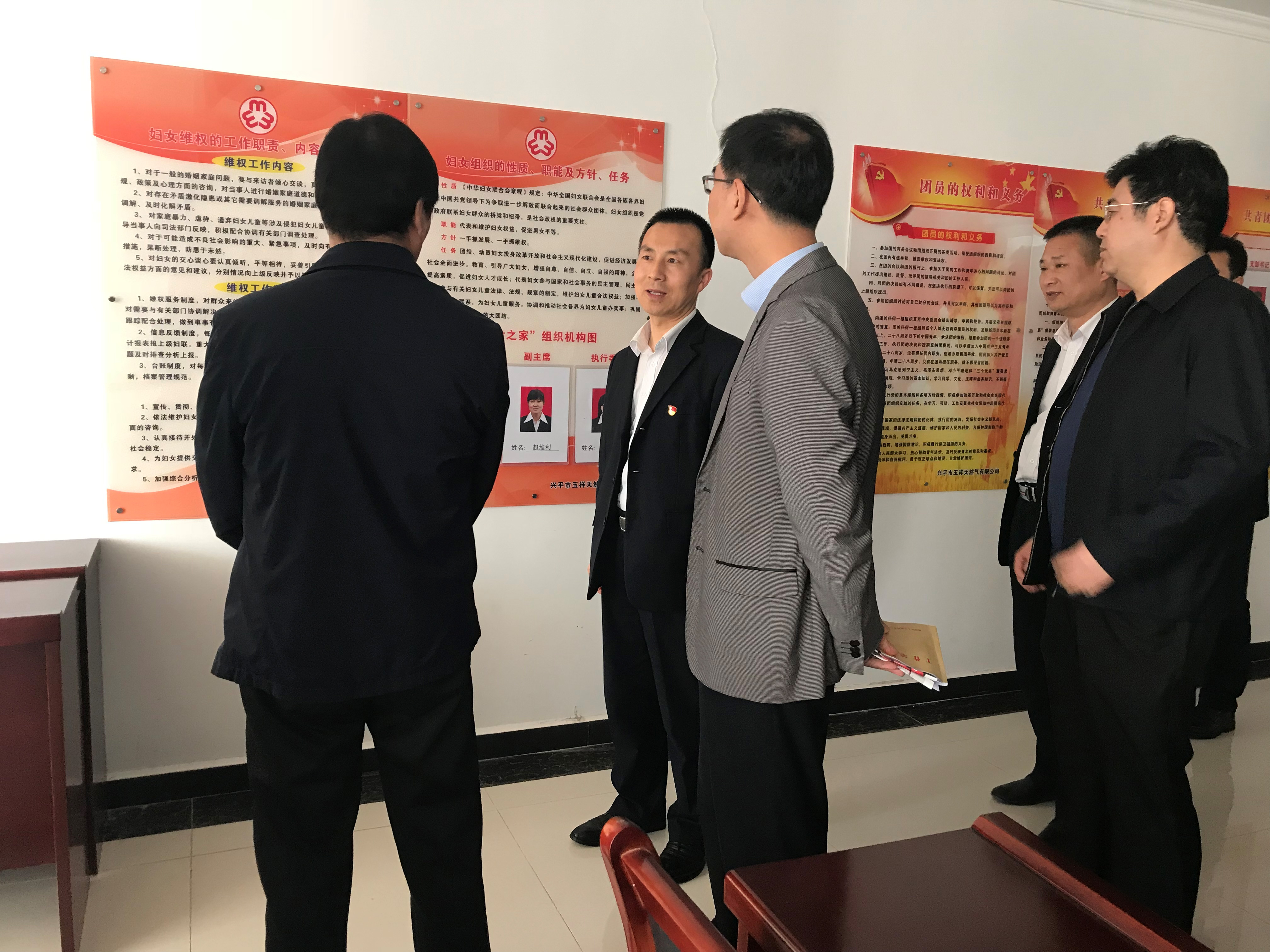 3月26日上午省咸两级组织部领导对兴平市的非公党支部建设及“党建互联网+”工作进行了检查调研,兴平公司党支部作为兴平市非公企业的党建代表单位接受了省委领导的调研检查。参加此次调研的有省委组织部副巡视员杨国锋、组织二处副处长李随军、调研员赵菊风、咸阳市委组织部副部长张兴发等领导,陪同检查的有兴平市委组织部部长朱小团、副部长兼两新党工委书记郭全社、住建局副书记冯英豪等人。省委一行领导参观了兴平公司党员活动室、工会、共青团、妇联工作阵地,公司党支部书记焦晓敏就党建情况做了汇报,检查组领导对兴平公司党建阵地、党员团队管理、企业文化建设给予了充分肯定,同时对党员进社区报道活动提出了要求,要求非公企业的党员要到社区报道,并积极参加社区活动。同时要充分运用党建工作加强与当地政府职能部门的联系,促进企业的良性发展。